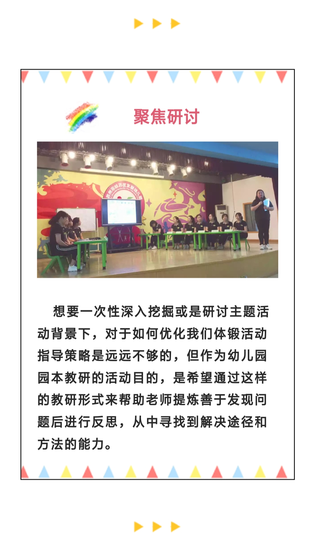 5月23日友联幼儿园教研组组织老师进行了《奇妙的绳线》主题之体锻中绳线活动开展情况研讨活动,整体教研活动分为了“前期简述、各抒己见、聚焦研讨、和分享交流”四部分。