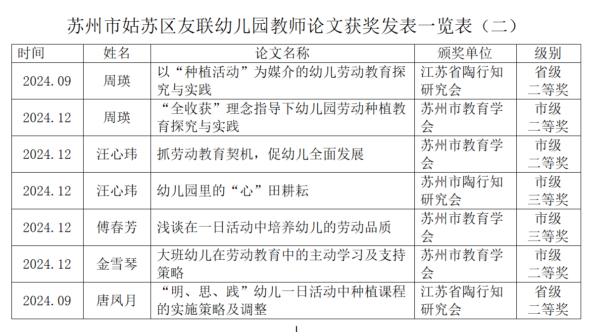 友联幼儿园教师论文获奖发表一览表(二)
